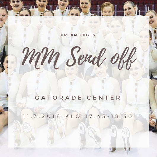 Dream Edges MM-2018 Send off -tapahtumassa näemme viimeisen kerran Suomessa kauniin ja koskettavan lyhytohjelman Syksy ja vaikuttavan ja ennakkoluulottoman vapaaohjelman Pako mielisairaalasta. Tapahtuma on kaikille avoin ja ilmainen. Tervetuloa kaikki ystävät, sukulaiset,fanit ja muodostelmaluistelun ystävät! Dream Edges edustaa Suomea Muodostelmaluistelun (jun) MM-kilpailuissa Zagrebissa Kroatiassa 16.-17.3.2018. Kaikki tuki on joukkueelle tärkeää. Tule lähettämään Team Finland 1 matkaan!